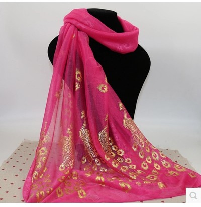 春秋雪纺纱糖果色丝巾烫金孔雀尾民族风两用纱巾纯色披肩围巾批发