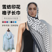 热销新款阿拉伯头巾批发雪纺印花格子长巾中东款花边披肩女士围巾