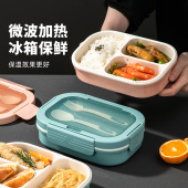 批发长方形学生饭盒加厚密封带勺叉便当盒上班族微波加热便携餐盒