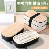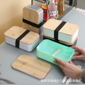 小麦秸秆日式双层竹盖饭盒大容量学生餐盒可微波带餐具亚马逊批发