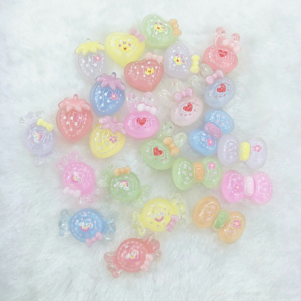 冰透渐变色草莓爱心饰品配件DIY手机壳贴片鞋花发绳配件现货批发