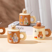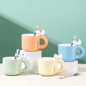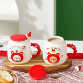 爱心动物陶瓷马克杯喝水家用带盖勺女生情侣办公室可爱创意高颜值
