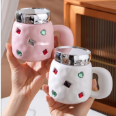 轻奢风高级镜面杯砖石陶瓷杯马克杯办公杯网红爆款礼品大把手高雅