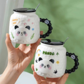 熊猫陶瓷马克杯喝水杯子家用带盖勺女生情侣办公室可爱创意高颜值