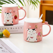 可爱卡通奶牛陶瓷马克杯带盖勺儿童学生家用喝水杯女生早餐牛奶杯