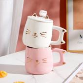 猫咪陶瓷杯咖啡杯碟水杯早餐杯情侣杯轻奢可爱少女卡通高档马克杯