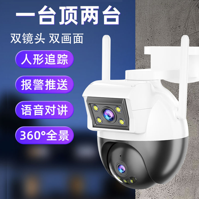 双目枪球联动无线监控摄像头360度家用监控器 室外双画面球机镜头