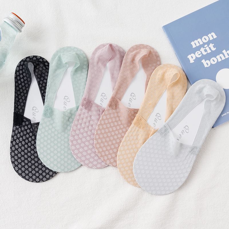 船袜女袜夏款防滑不掉跟纯棉底夏季薄款网眼防顶破单鞋冰丝隐形袜