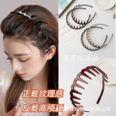 跨境爆款两戴高颅顶蓬松美拉德色系纯色发箍带齿碎发波浪发卡头箍