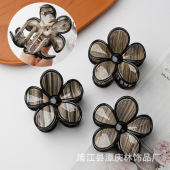 法式复古文艺太阳花抓夹简约木纹制感黑边发夹高级感盘发鲨鱼夹女