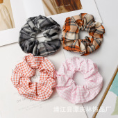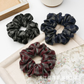 日韩复古格纹银标褶皱大肠发圈秋冬质感新款日常百搭布艺发绳头花