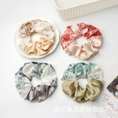 缎面印花大肠发圈2025新款森系高级感洋气双拼头绳发饰扎头发饰女