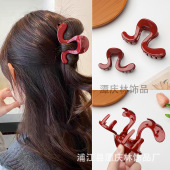 林璨新款温柔正红色简约几何抓夹深邃沉稳感鲨鱼夹超高回头率发饰