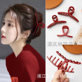 秋冬新款新年大红色抓夹简约鲜明亮色系后脑勺盘发鲨鱼夹源头厂家