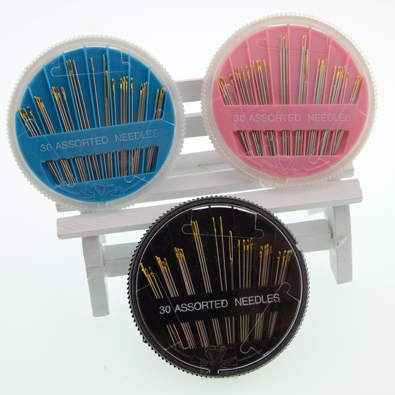 正品质量 30枚金尾手缝针盒 黑圆盘金尾盒针 diy针线套装配件