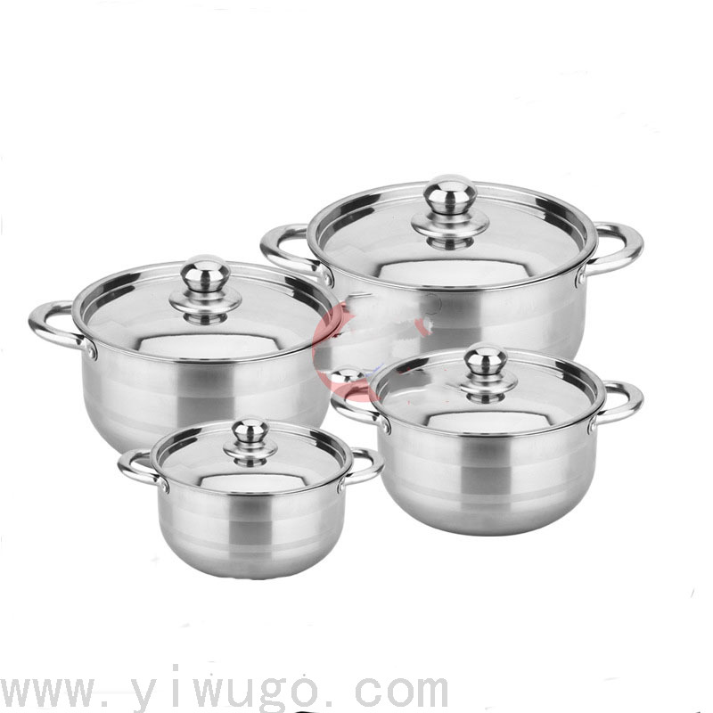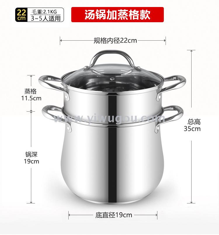 新款不锈钢锅具套装 家用8件套带盖双耳汤锅 煲炖煮蒸锅 苹果锅