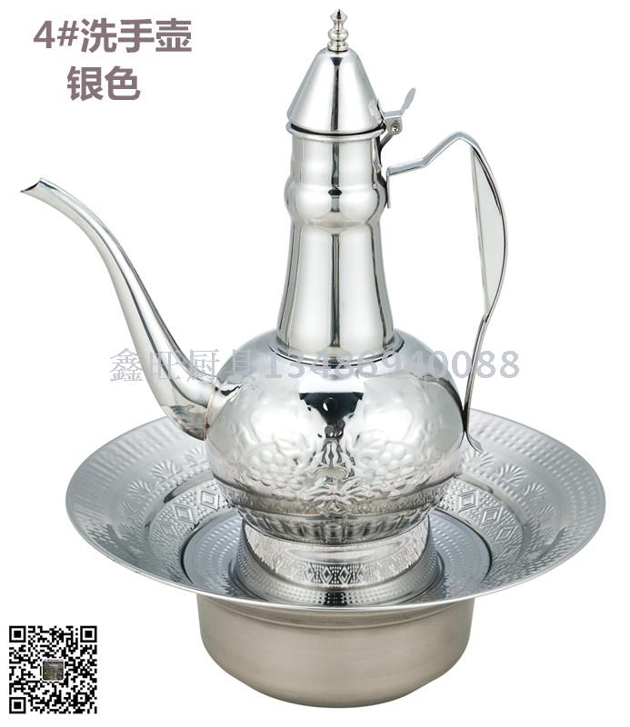 热销不锈钢洗手壶 维吾尔洗脸洗手盆 新疆金色银色接水盆长嘴水壶