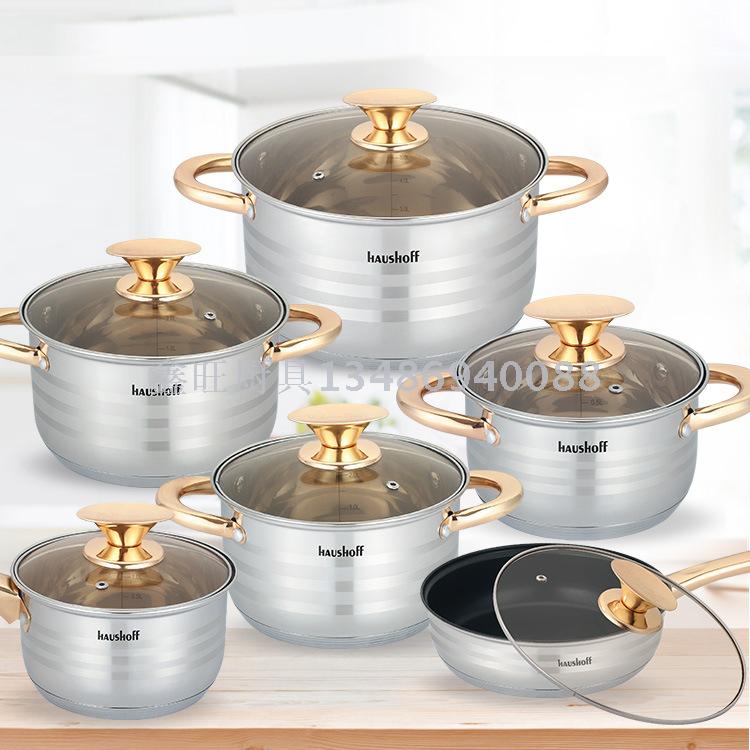 不锈钢套锅八件套套锅空心柄套 银彩套锅复底套锅HAUSHOFF