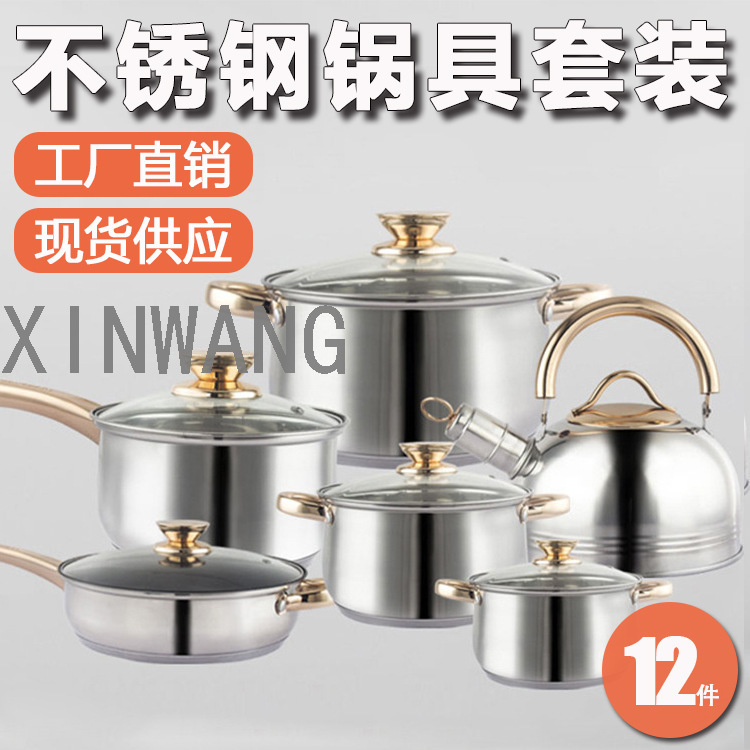 不锈钢锅套锅12件套汤锅三件套锅具套装奶锅炉灶GRANDKING