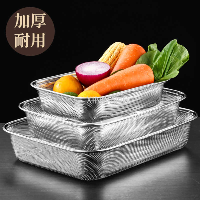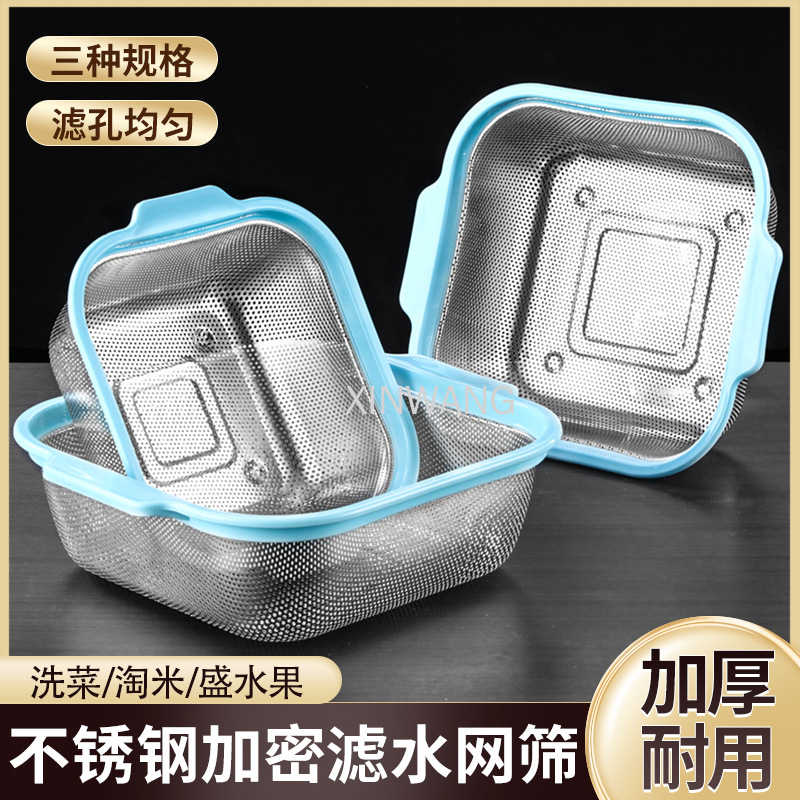 不锈钢方形沥水篮洗米筛多功能淘米器蔬果洗菜篮沥水篮米筛密孔盆