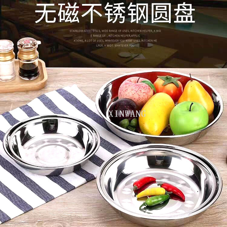 不锈钢无磁圆盘 足尺加厚加深圆形汤盘酒店饭店餐厅食堂礼品赠品