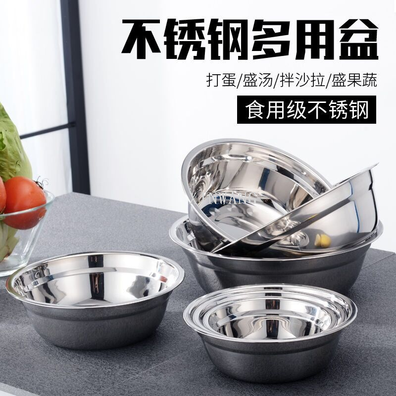 不锈钢盆商用厨盆料理盆洗菜盆洗澡大号圆形盆面盆加厚多用调料盆