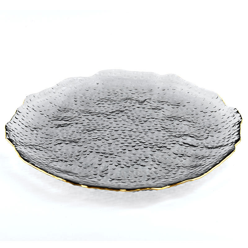 高颜值圆形彩色玻璃盘子大号不规则欧式垫盘客厅家用装饰摆盘批发