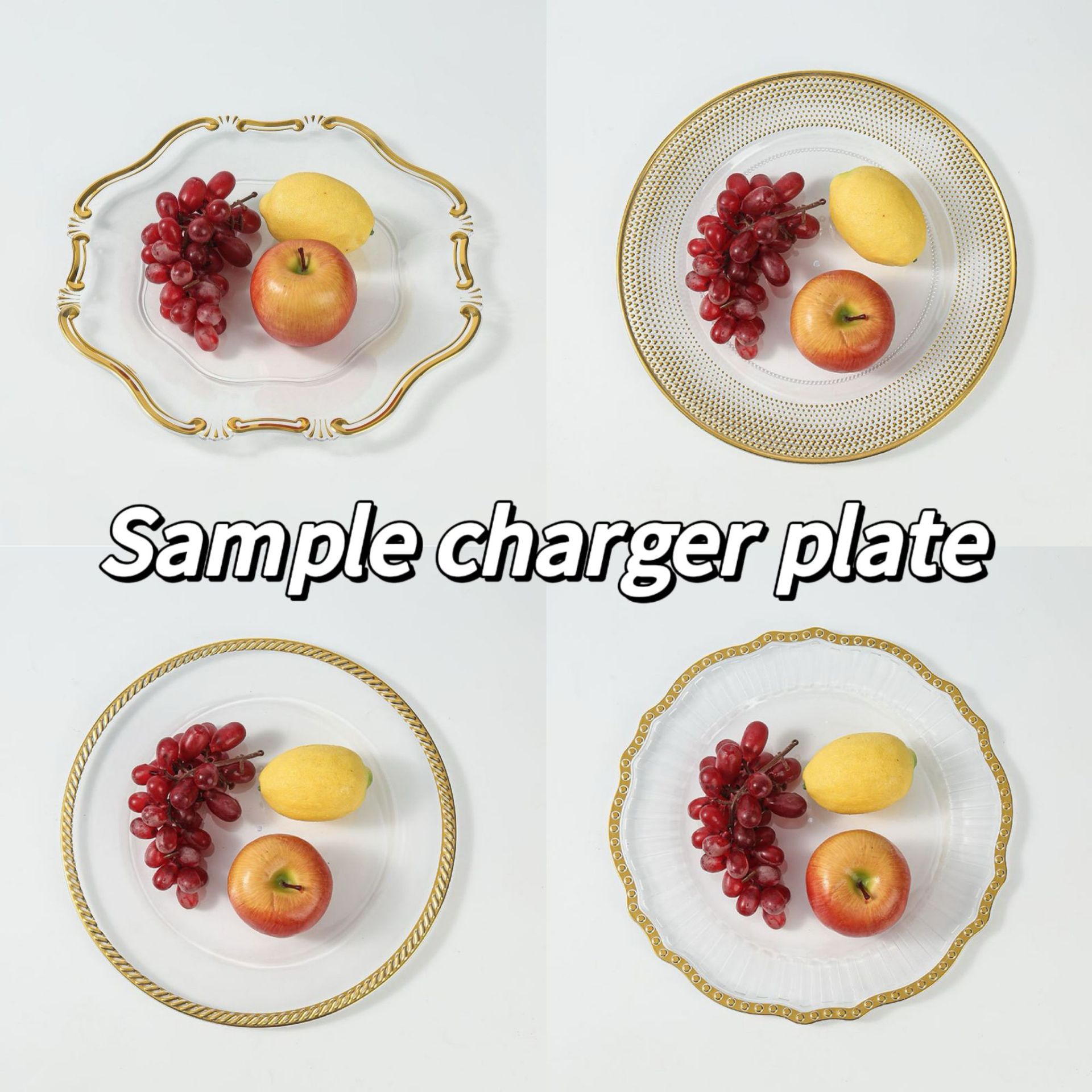 charger plates高颜值欧式花纹水果盘电镀金装饰盘外贸可定批发
