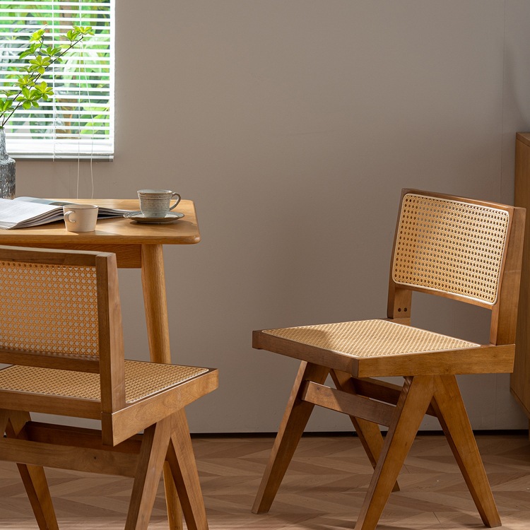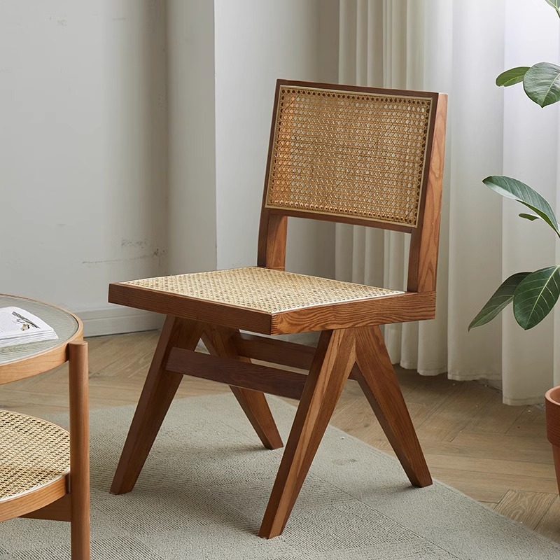 昌迪加尔椅子家用藤编餐椅实木北欧原木风民宿靠背网红侘寂风餐椅