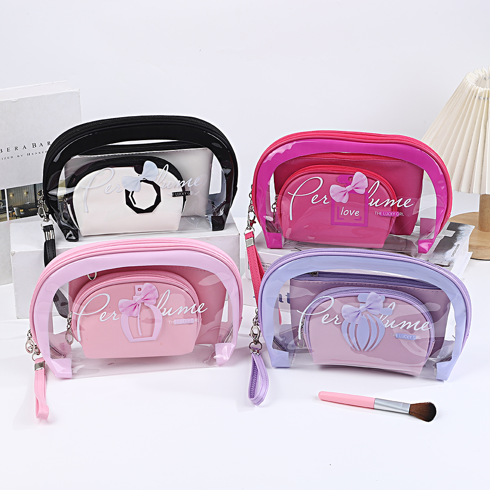 跨境原创热销透明pvc二件套化妆包时尚高颜值口红包收纳包便携