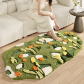 秋冬简约苔藓风客厅地毯卧室长条植绒地垫高低毛沙发毯房间床边毯