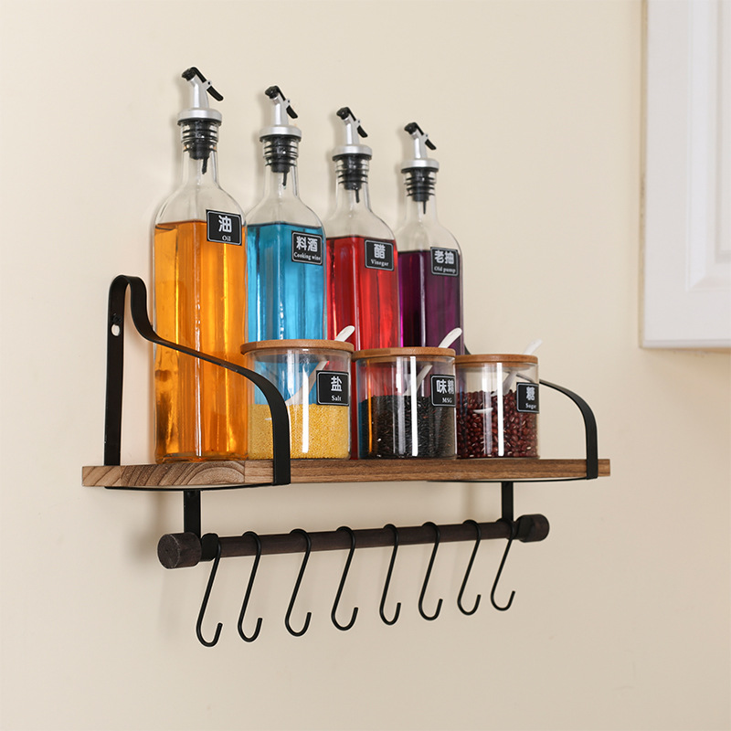 墙面置物架浴室厨房收纳架实木墙上储物架浮动隔板铁艺壁挂悬浮架