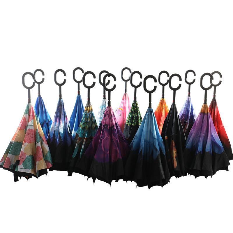现货手开反向伞遮阳伞汽车伞礼品广告伞双层直柄防晒雨伞定制logo