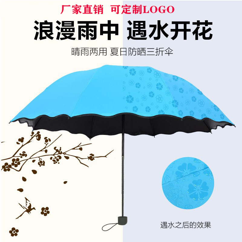 雨伞定制荷叶边女士太阳伞 折叠式晴雨两用广告伞遇水开花三折伞