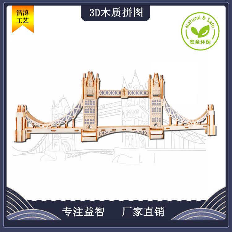 3D立体拼图 大四版木质激光拼版 儿童diy益智玩具 建筑伦敦桥拼装