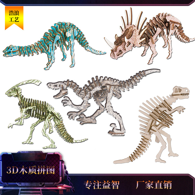摆地摊小二片恐龙7-14岁立体拼板3D立体木制儿童玩具来样地摊货