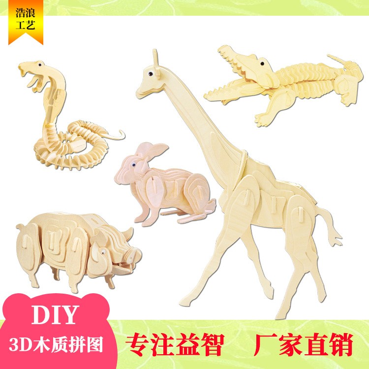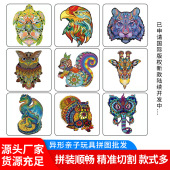 跨境源头厂家三合板3D异型木质拼图动物模型亲子拼装diy玩具