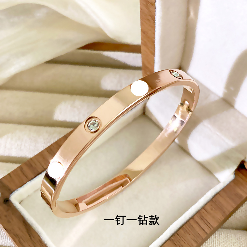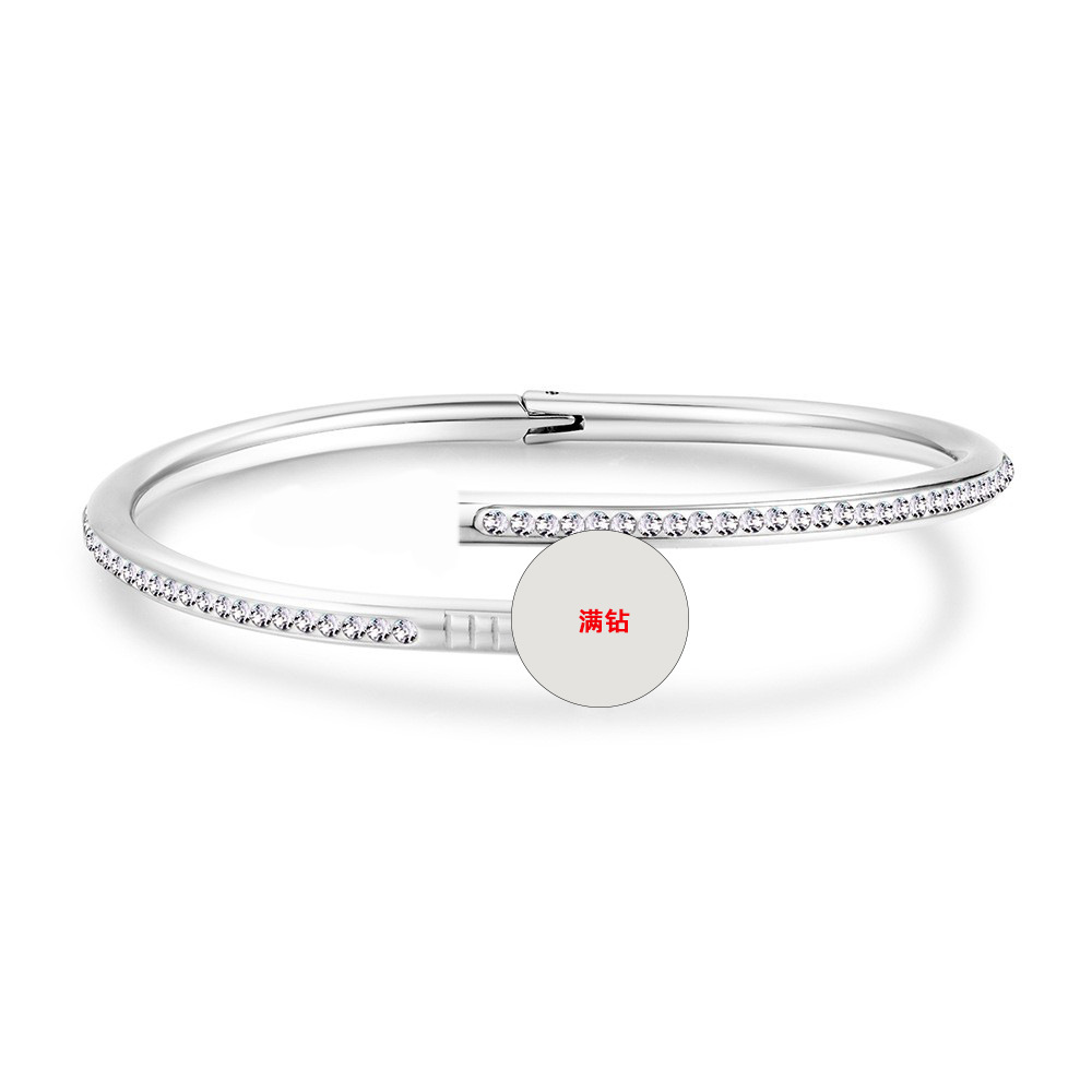 不掉色真空电镀钛钢手镯女时尚轻奢四叶草爱心手环满钻高级感手饰