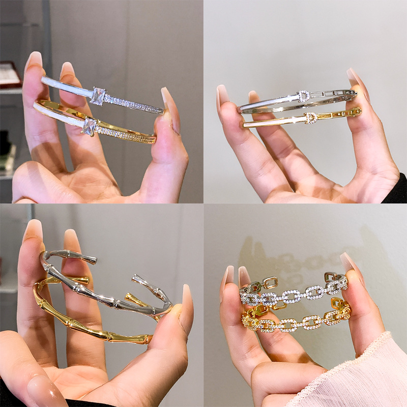 新款下游热销爆款轻奢百搭钛钢手镯合集不锈钢高级感卡扣保色手环