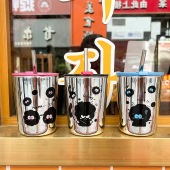 8615可爱黑煤球电镀玻璃杯卡通水杯牛奶杯高颜值咖啡 ins风杯子