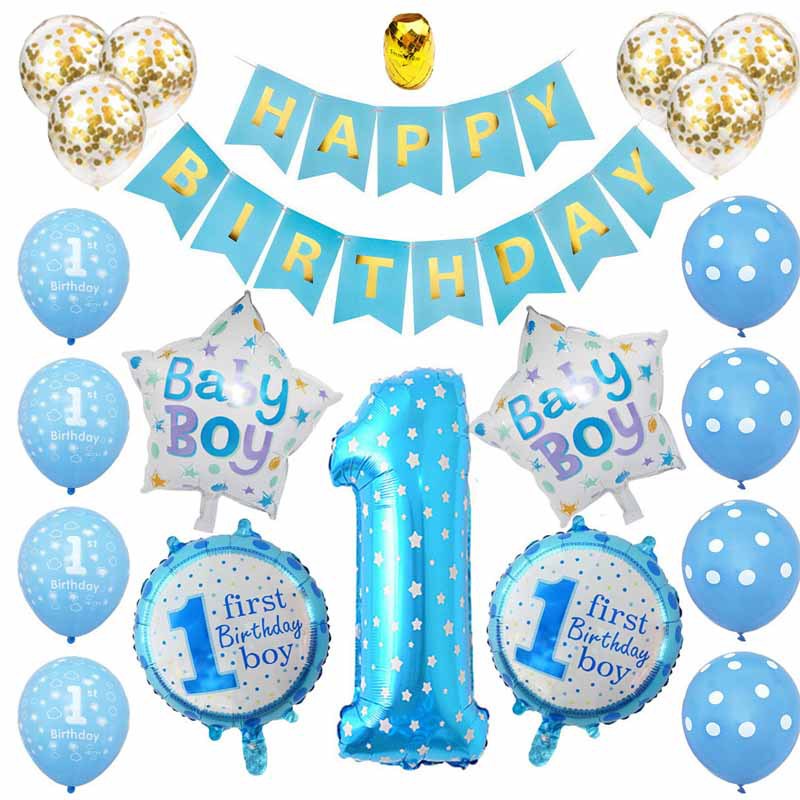 宝宝周岁生日装饰气球皇冠数字铝箔气球套装男宝女宝气球组合批发