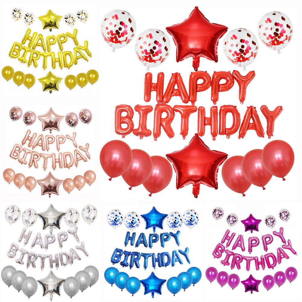 16寸瘦 美版铝膜生日快乐 玫瑰金饰景气球彩色字母桌面香槟气球