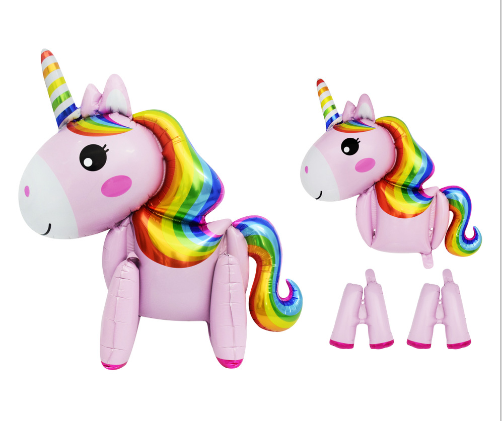 4D卡通造型独角马彩虹铝膜铝箔气球站立生日派对装饰卡通小马批发
