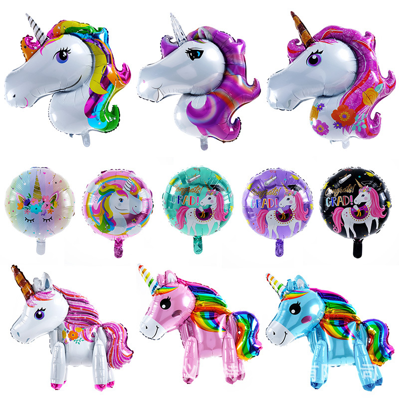 跨境热销卡纸精装独角兽气球派对用品铝膜汽球3D独角马生日装饰