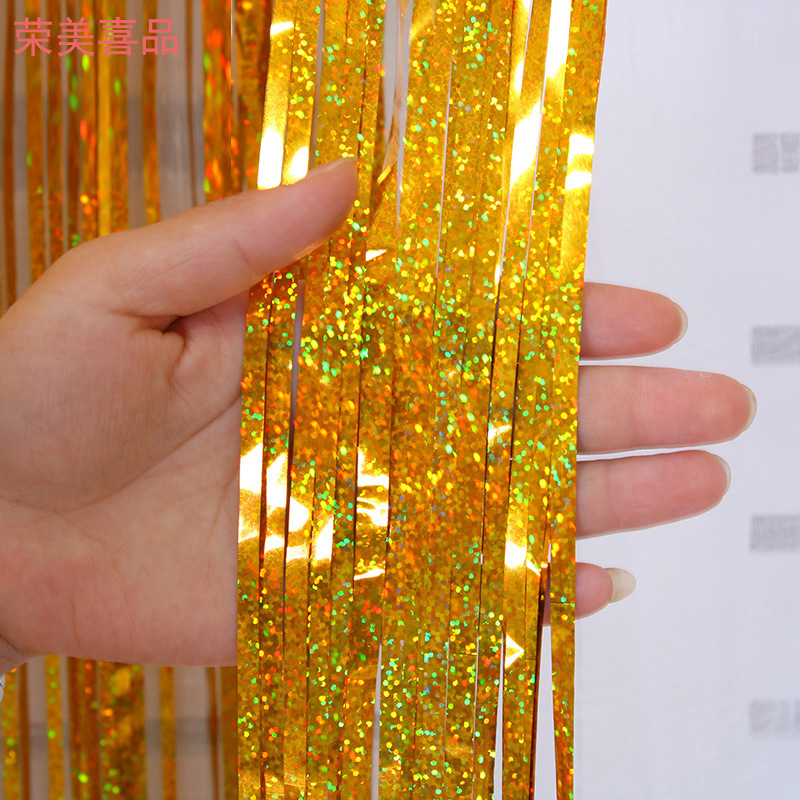 雨丝帘1*2米彩条亮光金色节日用品舞台背景布置道具流苏雨丝流苏