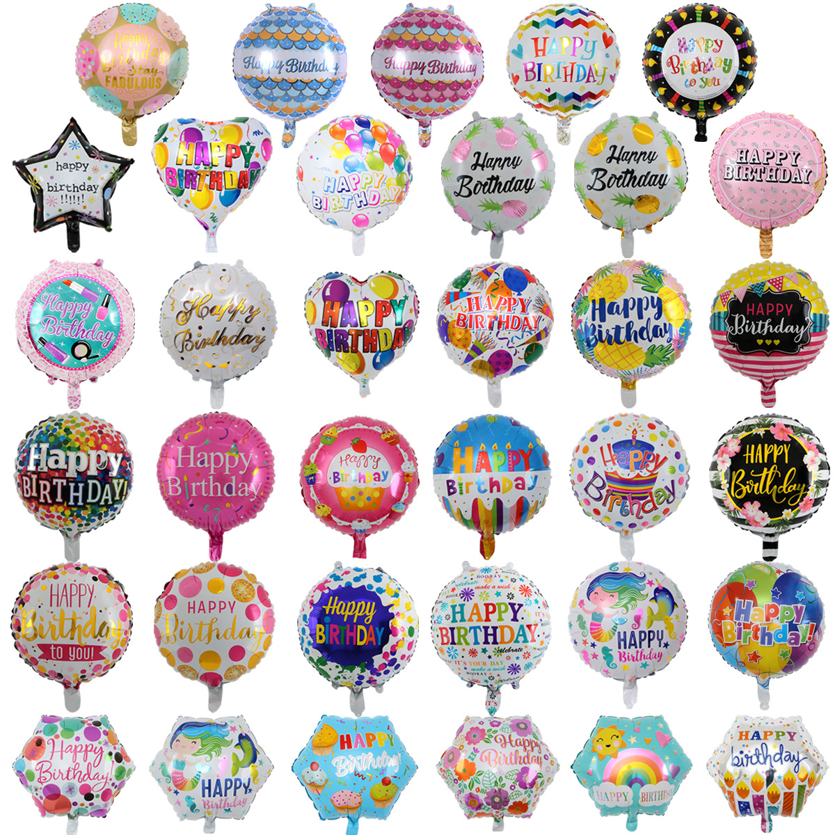 18寸圆形铝膜气球生日快乐happybirthday节庆派对用品装饰地推