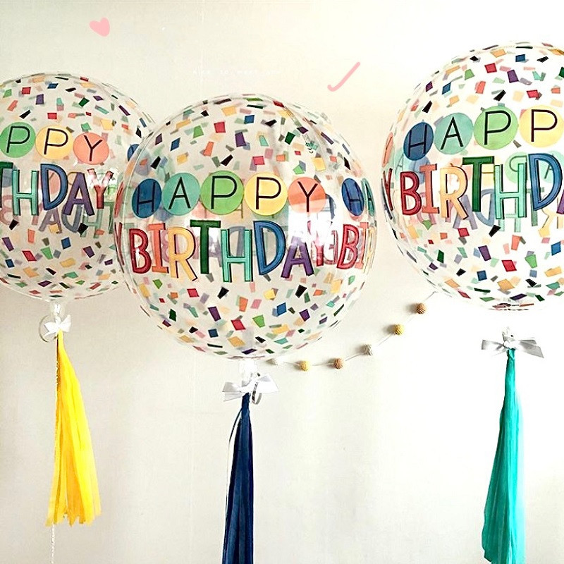 韩国ins4D立体网红波波球彩虹印花字母派对生日透明飘空氦气球