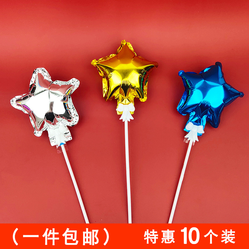 ins创意气球装饰插件生日蛋糕气球插签5寸爱心星星铝膜气球插旗插