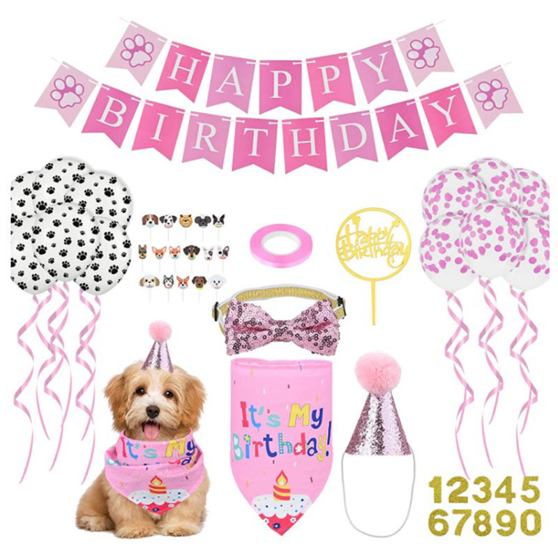 宠物生日派对狗狗拉旗三角巾蛋糕帽装饰道具布置用品节日装扮套装