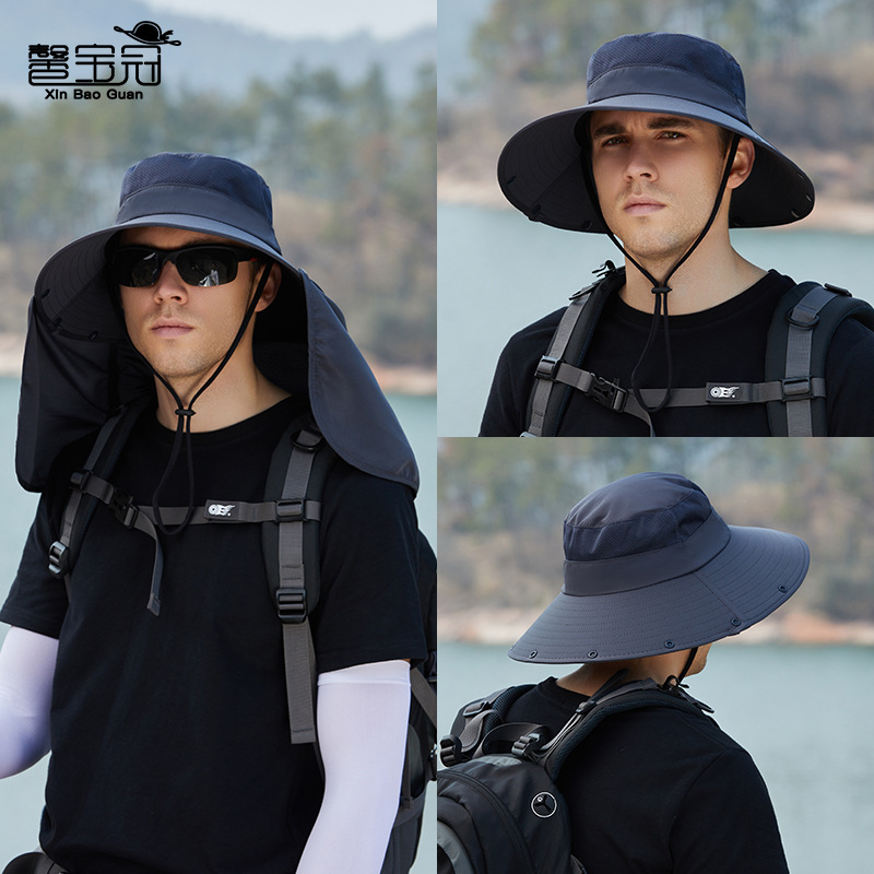 9215钓鱼帽子男夏季护颈防晒遮阳户外遮脸太阳帽超大檐披肩渔夫帽